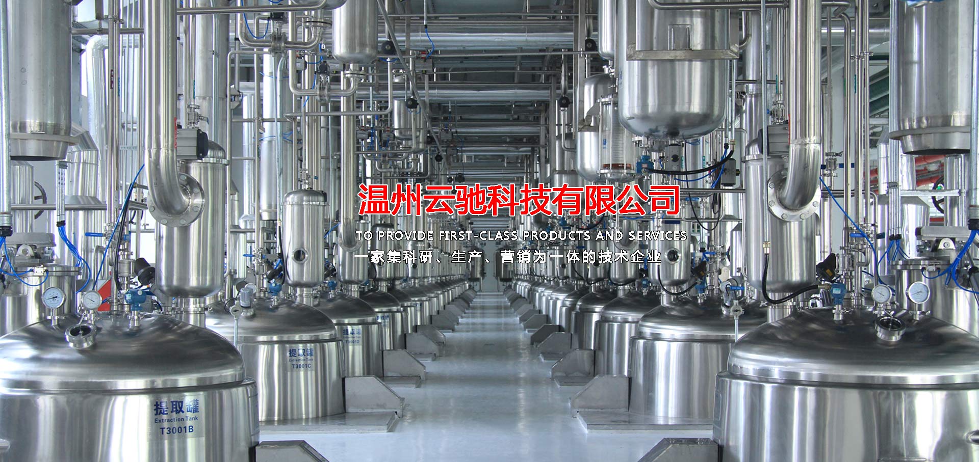 溫州云馳科技有限公司是一家集科研、生產(chǎn)、營(yíng)銷為一體的技術(shù)企業(yè),本公司生產(chǎn)的中藥提取、濃縮、蒸發(fā)及有機(jī)溶媒回收設(shè)備,衛(wèi)生級(jí)不銹鋼容器設(shè)備,衛(wèi)生級(jí)管道配件等系列產(chǎn)品,范圍涵蓋制藥工程、乳品工程、生物工程、化工工程等領(lǐng)域,目前,本公司產(chǎn)品包含八大系列和28類品種,分別為中藥提取設(shè)備、濃縮設(shè)備、純化分離設(shè)備,酒精回收設(shè)備,配液系統(tǒng)設(shè)備,食品乳品機(jī)械設(shè)備,不銹鋼容器設(shè)備以及輔助配套設(shè)備等,力爭(zhēng)為廣大客戶提供滿意的交鑰匙工程服務(wù),目前,本公司已與多家科研院所及相關(guān)設(shè)計(jì)單位、行業(yè)協(xié)會(huì)、技術(shù)專員合作,建立了完善的科研開發(fā)體系,技術(shù)力量雄厚,擁有先進(jìn)的質(zhì)量保證體系,我們將打造一支素質(zhì)高,技術(shù)精,服務(wù)熱情的職業(yè)化隊(duì)伍,為廣大客戶解決設(shè)備工藝上的需求和難題并為廣大客戶提供優(yōu)質(zhì)的服務(wù)。